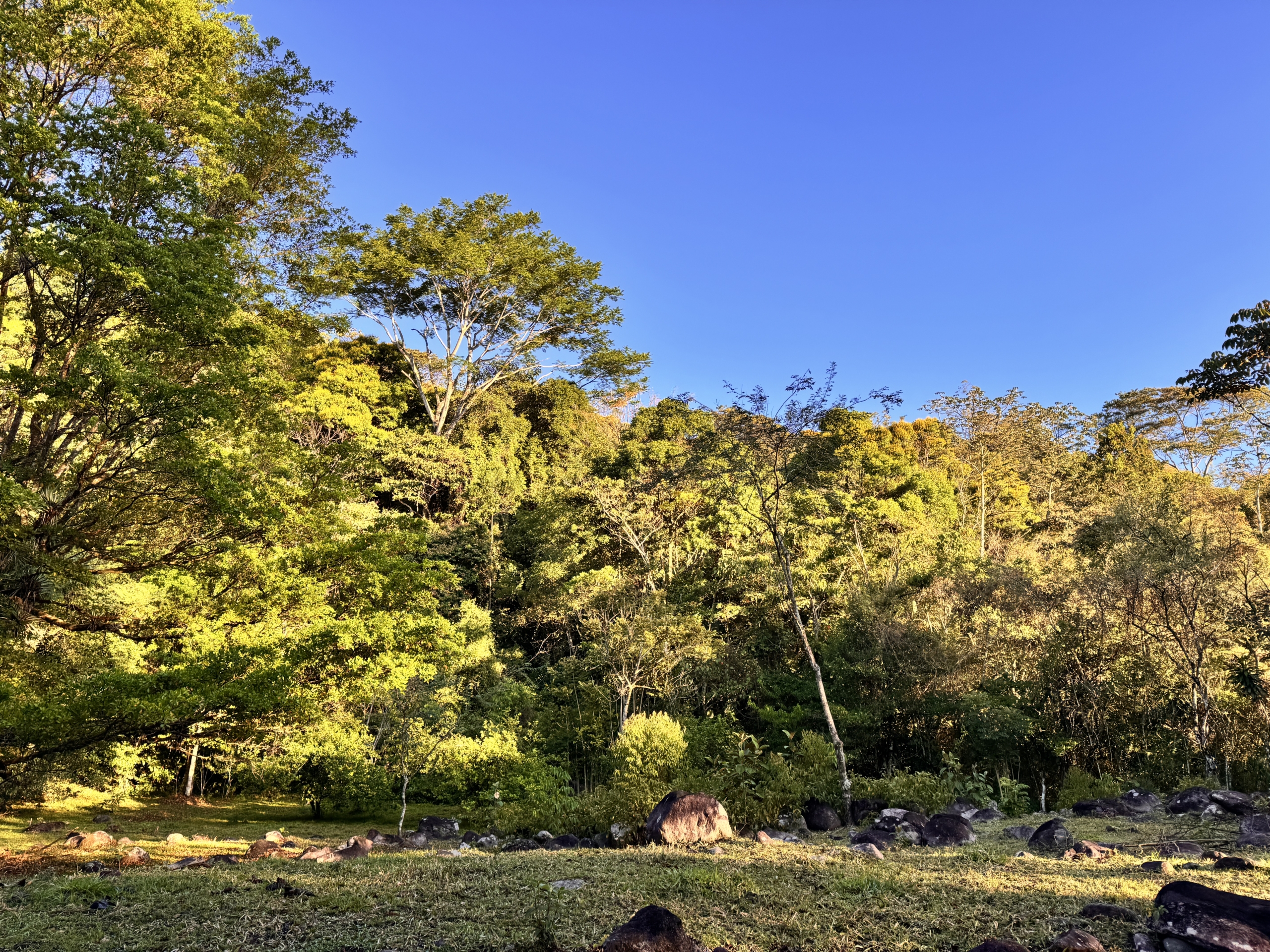 Integrated Use of Planted Hardwood Trees Mature teak, cedar, and amarillón trees were established for long-term use and can be thoughtfully integrated into a future project. By utilizing these trees as part of the development, it is possible to naturally open filtered views toward Cerro Chirripó while maintaining the integrity of the land.
