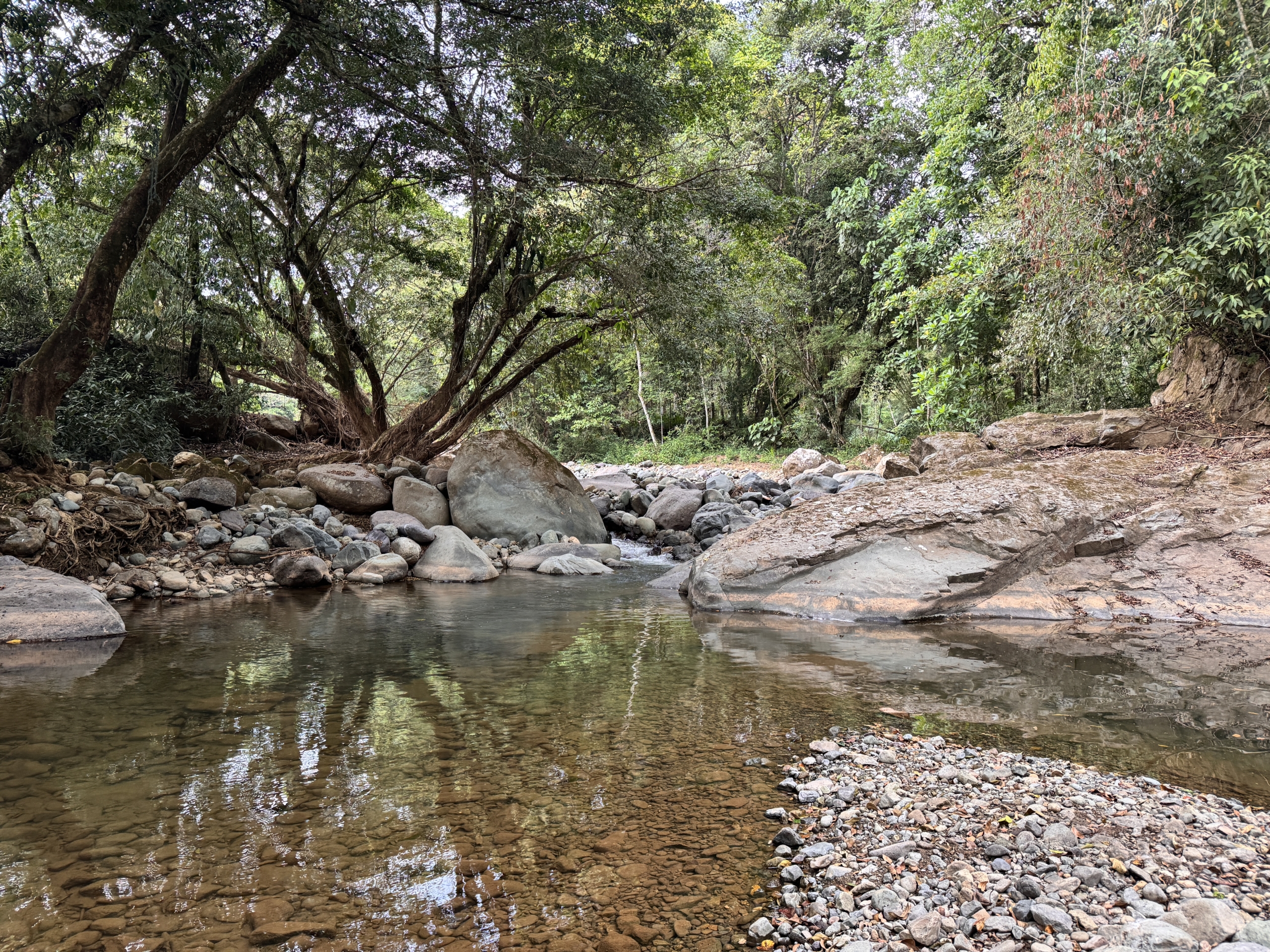 A través de una servidumbre privada que acompaña el río, la propiedad se va revelando de forma gradual, generando una conexión directa con la tierra desde el primer momento. El entorno es tranquilo y privado, con la casa ubicada sobre un área plana y aprovechable por encima del río, ofreciendo seguridad y acceso directo al agua.
