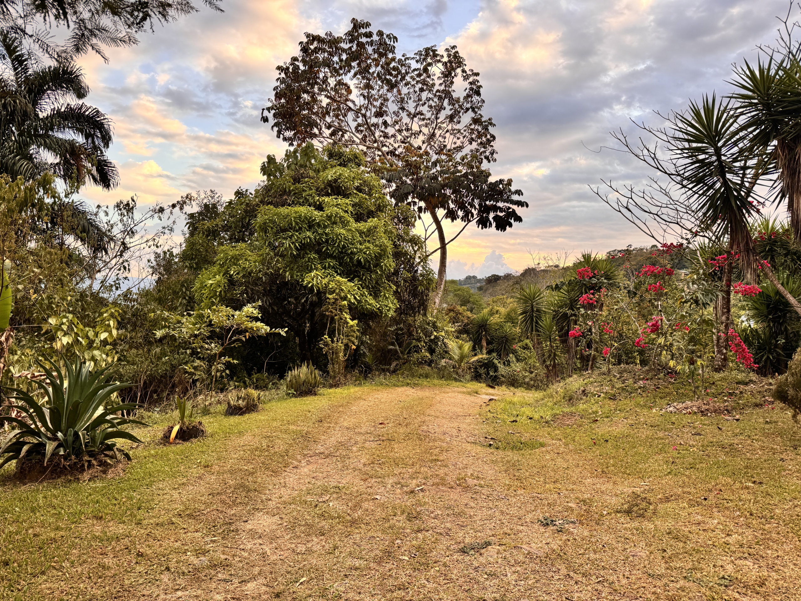 El terreno cuenta con árboles frutales y vegetación establecida, con vistas abiertas hacia el valle y atardeceres que se integran de forma natural al paisaje. El acceso es cómodo y confiable gracias a su entrada en cemento, a tan solo cinco minutos del centro, manteniendo una sensación de privacidad y desconexión.